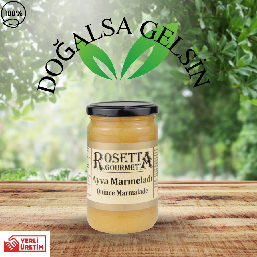 Mis gibi kokusu ve sıcacık rengiyle kahvaltılarınıza şüphesiz lezzet katacak. Güne başlarken Ege bahçelerinin lezettini sofralarınızda getirecek, güne gülümseyerek başlayacaksınız. Ferahlatıcı kokusu ve iç ısıtan rengiyle Rosetta Gourmet Ayva Marmeladı sadece lezzetiyle değil havasıyla size enerji verecek. Ürünümüzü kek, kurabiye, veya cheesecake tariflerinizle ekleyebilir başta çikolatalı olmak üzere dondurma servislerinizde, irmik veya kabak tatlısı ikramlarınızda severek kullanabilirsiniz. Hayat paylaşınca güzel, lezzetler eşlik edenlerle anlamlı. Sevdiklerinizle severek paylaşmanız dileğiyle. Afiyet olsun.